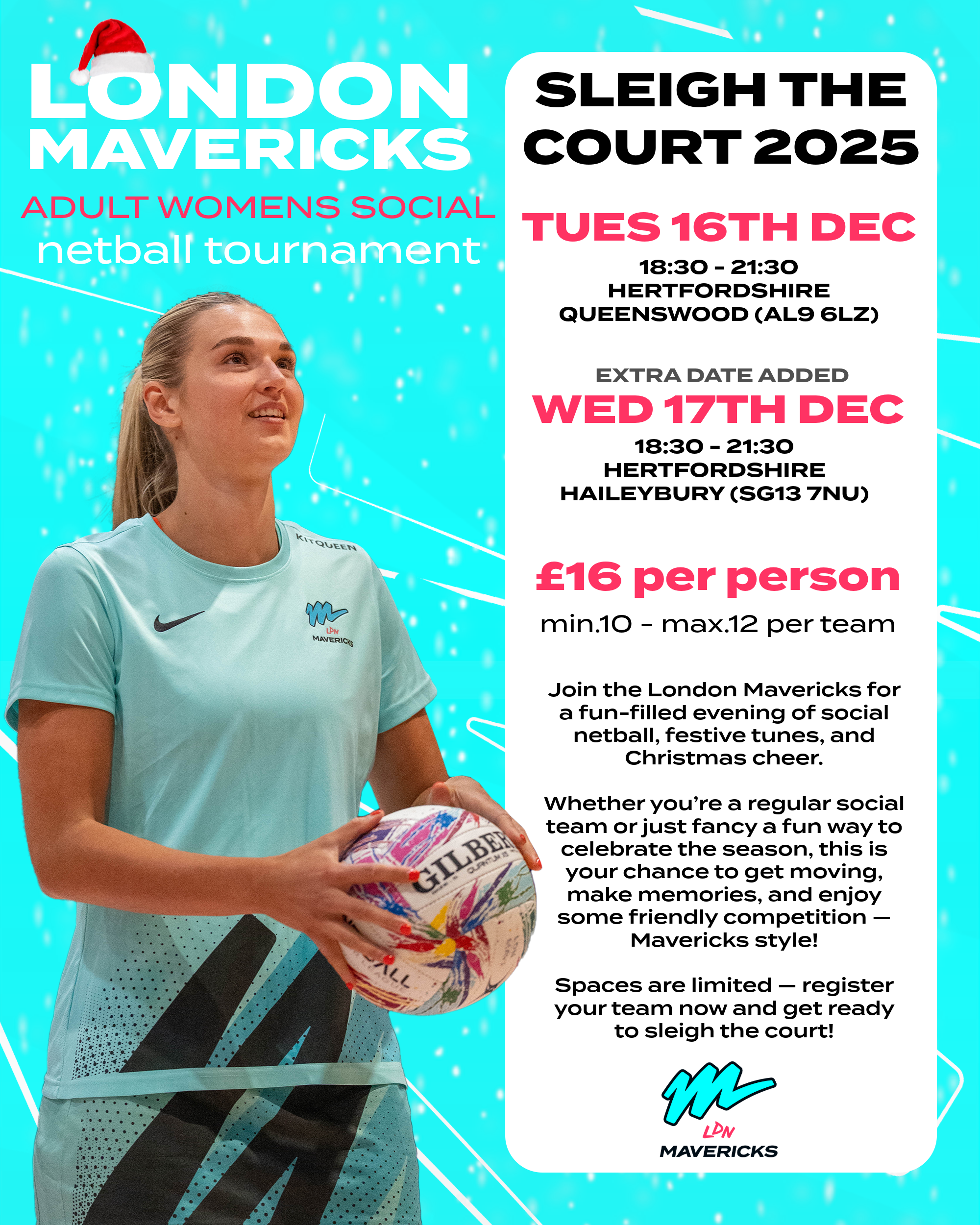 Join the London Mavericks for a fun-filled evening of social netball, festive tunes, and Christmas cheer at our annual Adult Christmas Social Tournament.